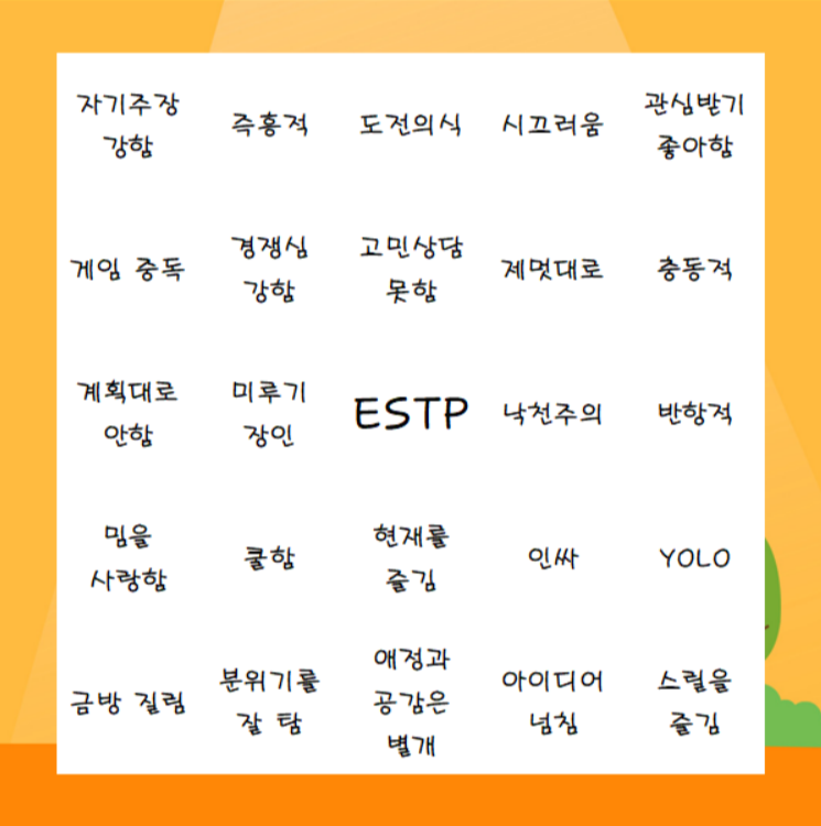 | [MBTI] 자유로운 영혼의 연예인 ESFP에 대해 알아보자! (빙고, 장단점, 궁합, 이상형, 유명인 등) (8) | 2022.01.21 |